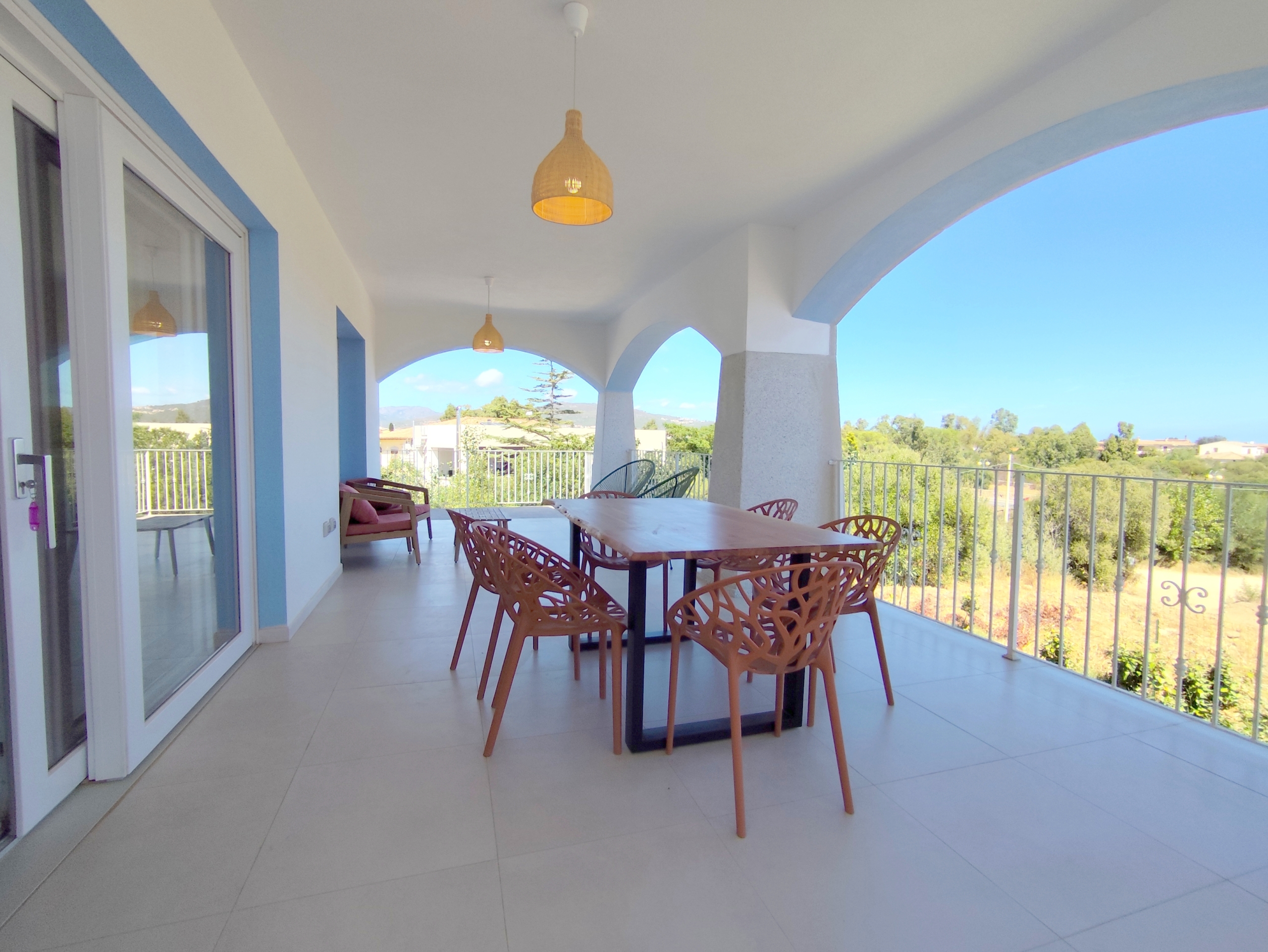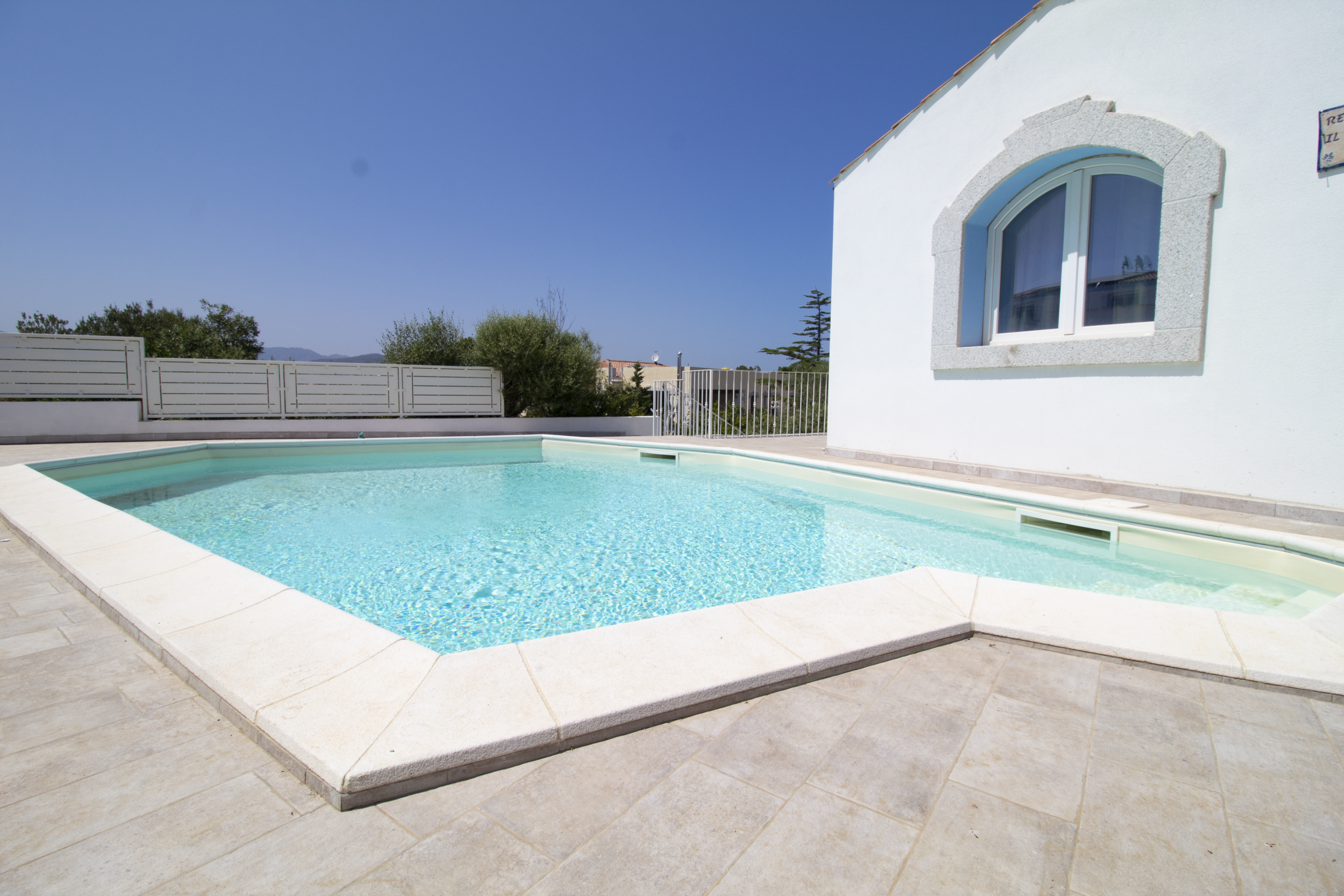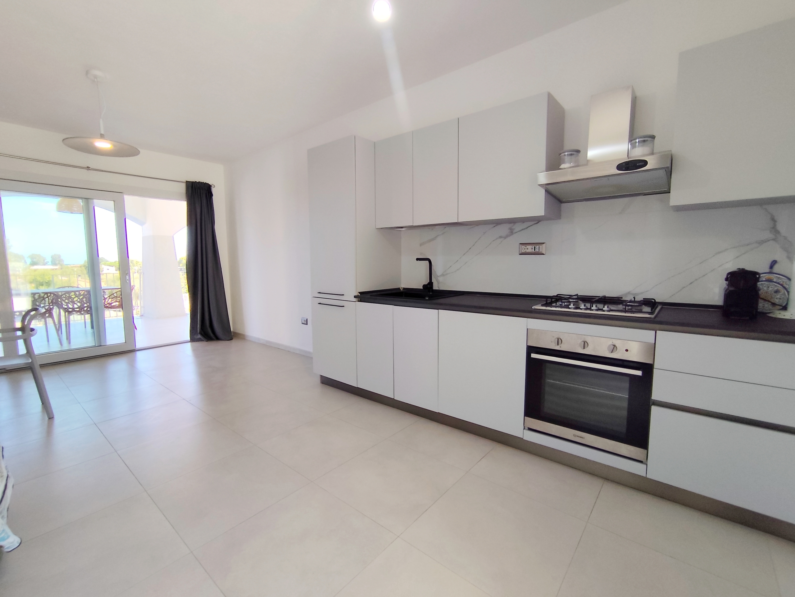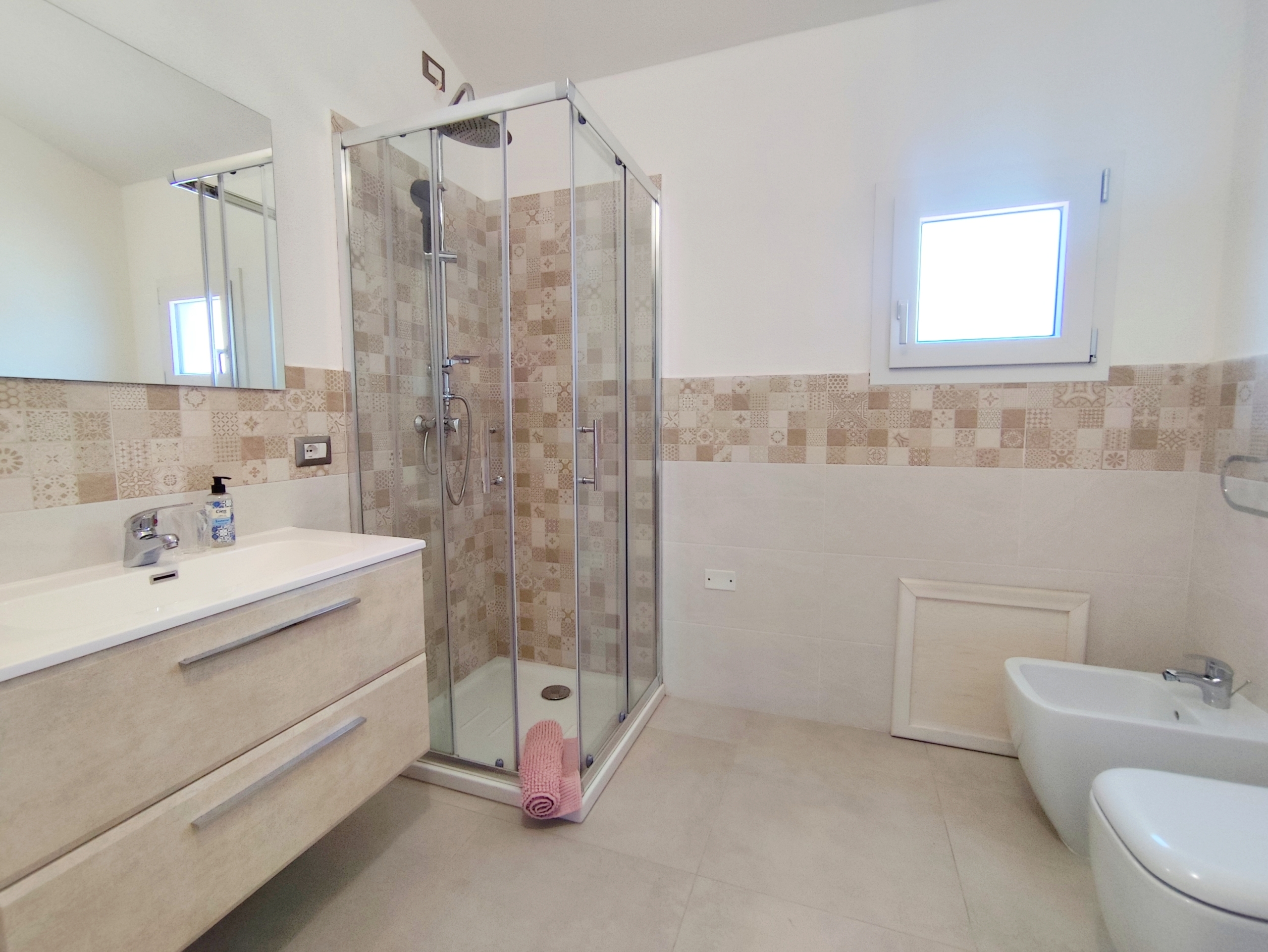 Al piano terra troviamo un comodo e ampio soggiorno con cucina attrezzata, un grande tavolo da pranzo, Smart TV, una camera matrimoniale con accesso alla piscina e un bagno; al primo piano abbiamo una seconda camera matrimoniale con terrazza vista mare, una camera con un ampio letto singolo, due bagni.